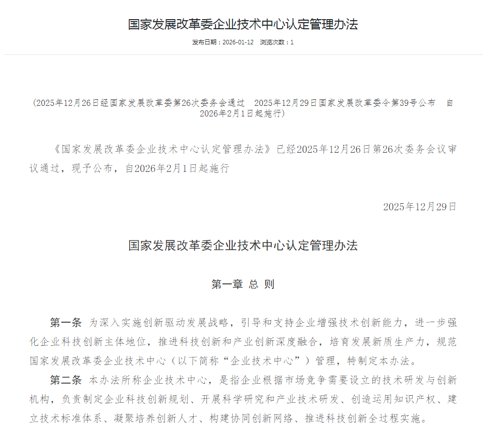 国家发展改革委企业技术中心认定管理办法