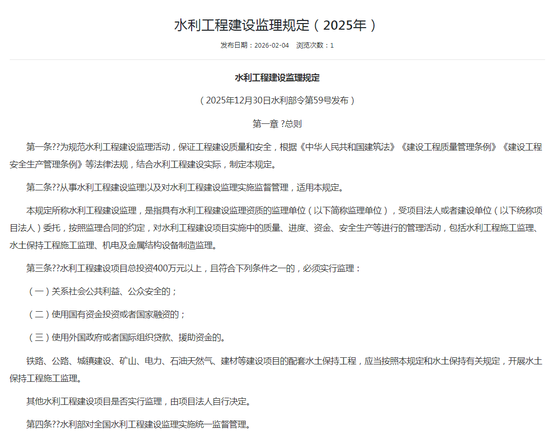 水利工程建设监理规定(2025年)