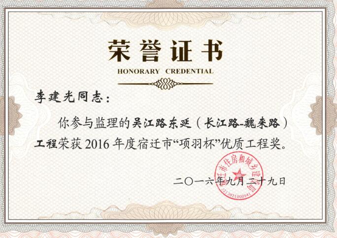 李建光2016年吴江路东延(长江路-魏来路)项羽杯
